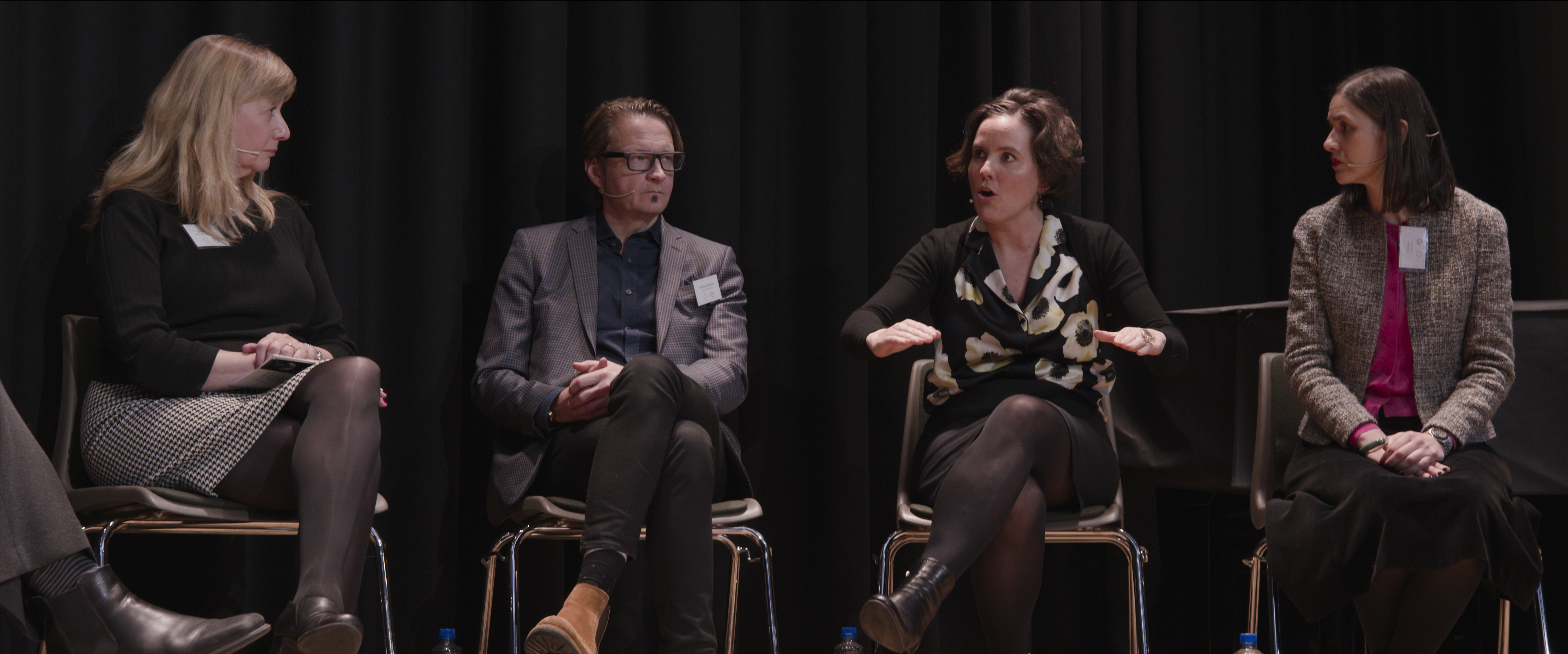 Maren Ørstavik (Aftenposten), Anders Beyer (Festspillene), Ingrid Lorentzen (Den norske opera & ballett), Ingrid Røynesdal (Oslo-filharmonien), Hanne Tømta (Nationaltheatret) og Maria Mediaas Jørstad (Talent Norge) stod for konferansens siste paneldebatt.