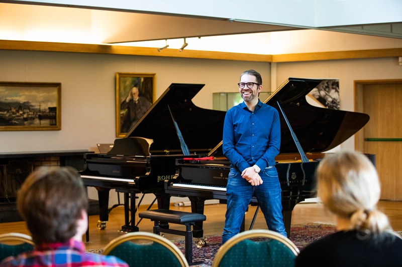 Håvard Gimse har sittet i juryen og plukket ut de 13 unge pianistene som nå har reist fra hele landet for å samles i Bergen. - Pianister sitter mye alene og holder på mange timer inne i sin egen stue og øver og øver. De vet kanskje ikke alltid like mye om hva folk som holder på med det samme andre steder i landet gjør. Sånn sett tror jeg det er et viktig poeng å samle dem i blant.