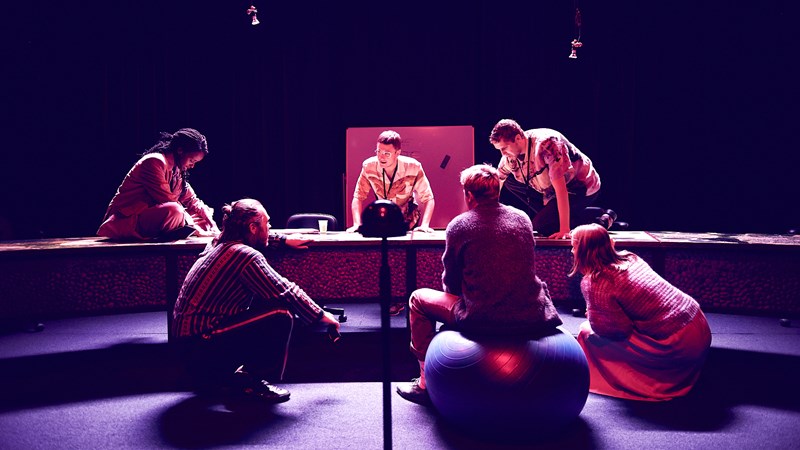 NyeNational består av skuespillerne Seda Witt, Sindre Strand Offerdal, Victoria Ose, Patrick Hilmar Ingvaldsen, Amina Sewali og Olavus Frostad Udbye. Foto: Øyvind Eide