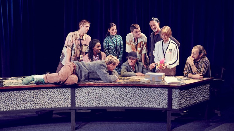 – Stykket handler om en gjeng som prøver å komme på den neste store fortellingen, uten at publikum får vite noe særlig mer om hva dette skal brukes til eller i hvilket format. Mens historiejakten pågår, oppstår det metafortellinger hvor Annie Baker på finurlig vis tar opp sexisme, trakassering, religion, kapitalisme og klimakrise for å nevne noe, sier Ose.